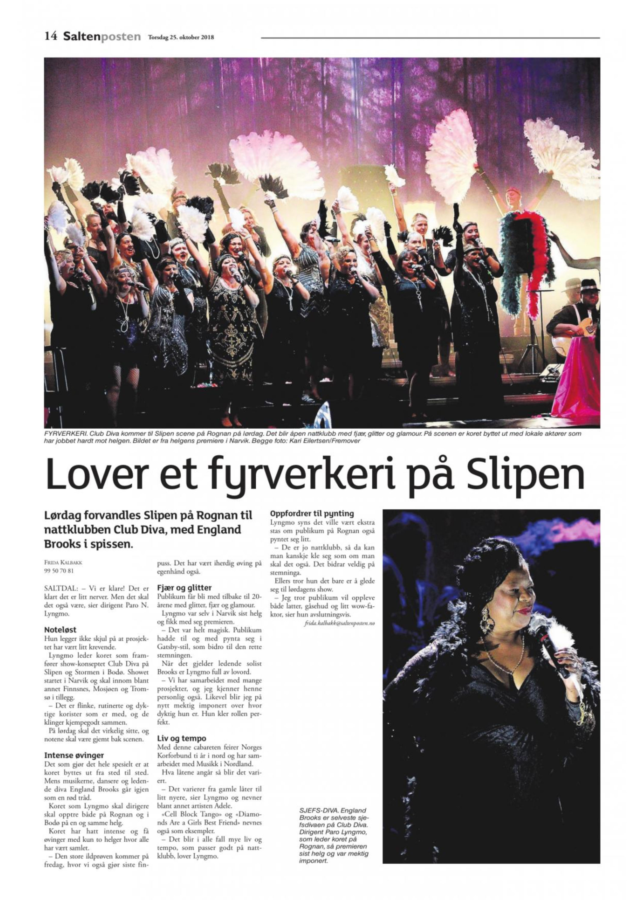 18. feb. 2019 Harstad Tidende: "Club Diva leverte så det sang!"