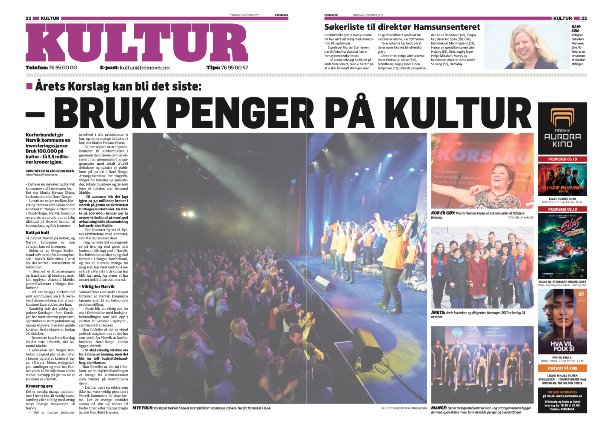 5. okt. 2017: Fremover: "Bruk penger på kultur"